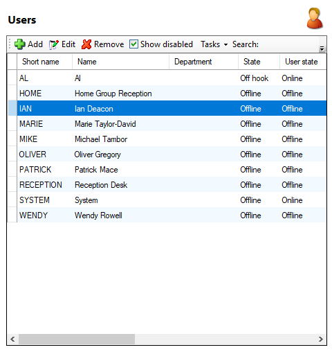 New users can also be added from this screen by clicking 'Add'. Adding new users is particularly useful if you do not want the client to automatically create a user account. If this is the case, then typically you would add a user per person who wants to use the client software.